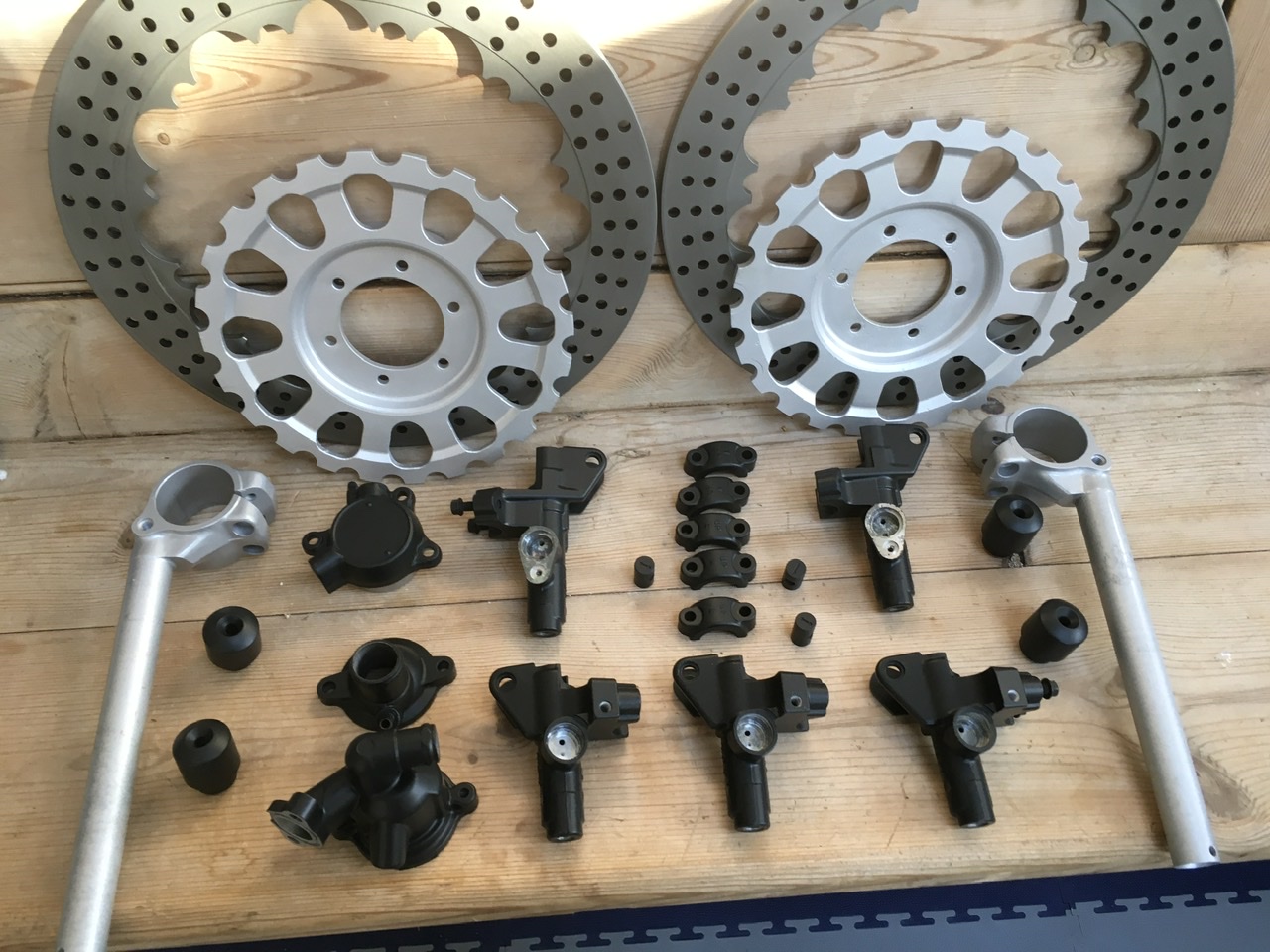 Front calipers waiting for the brake and clutch masters to get back together….