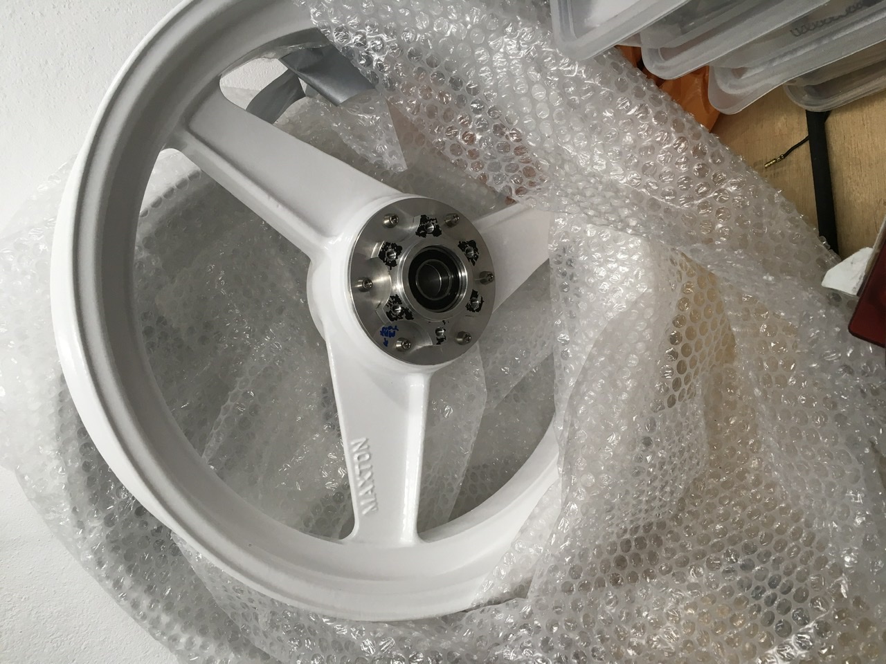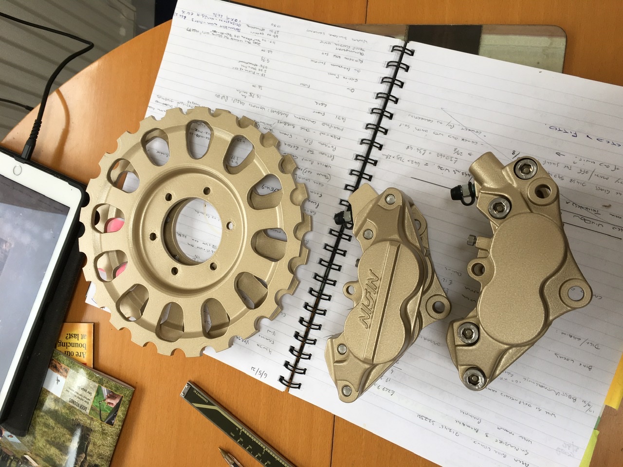 Just back…. Beautiful, lovely bit of work and he cleaned the rusty Spondon discs up too, the disc carriers had been painted gold with the calipers when they were being re-built but I’ve since discovered that that wasn’t a good idea…so they were stripped off and cerakoted too.